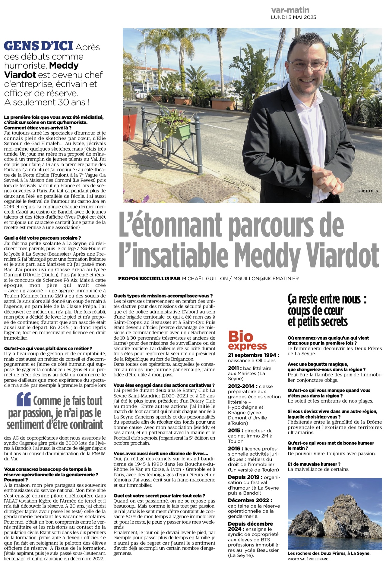 Var Matin publie un portrait de Meddy à l’occasion de la publication de deux nouveaux ouvrages